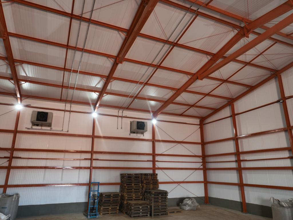 O armazém foi desenvolvido com estrutura metálica robusta, ventilação controlada e sistemas de isolamento térmico, assegurando resistência e desempenho contínuo mesmo em grandes volumes de operação. Já a câmara fria conta com painéis isotérmicos de alta eficiência e tecnologia de refrigeração automatizada, garantindo temperaturas precisas e economia de energia.