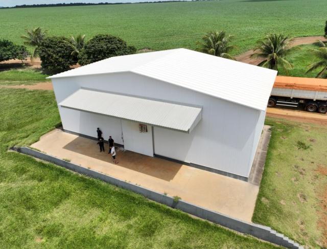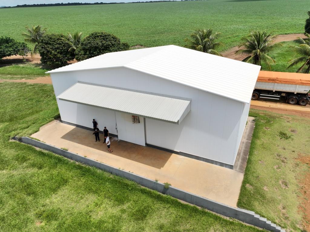 A estrutura conta com uma câmara fria moderna, equipada com sistemas de isolamento e refrigeração de última geração, garantindo o controle ideal de temperatura e umidade para a conservação dos produtos agrícolas. O barracão anexo foi projetado com ampla área útil, ventilação adequada e robustez estrutural, permitindo movimentação segura e eficiente de cargas e maquinários.